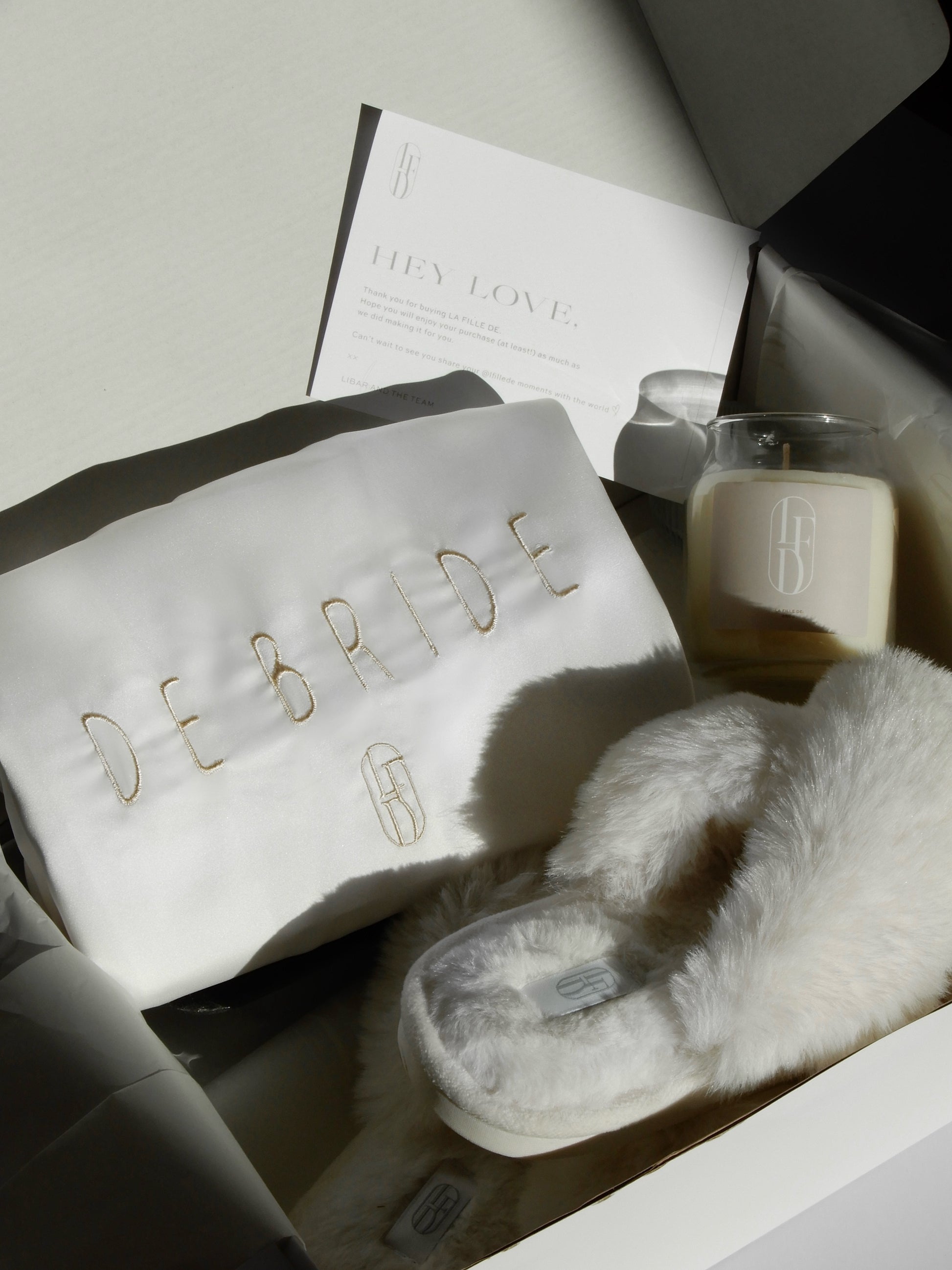 Experience the perfect combination of cloud-like slippers, De bride set, and LFD scented candle, providing everything necessary to feel exceptional, stylish and comfortable.